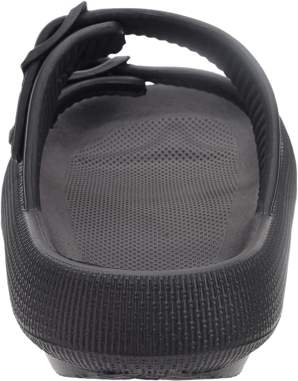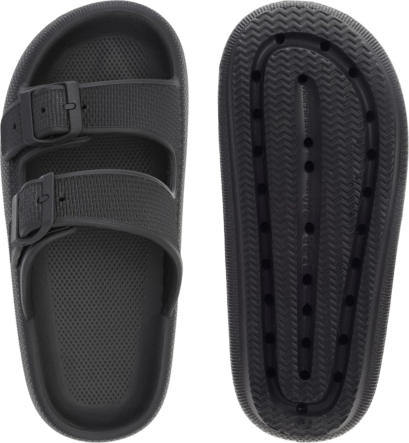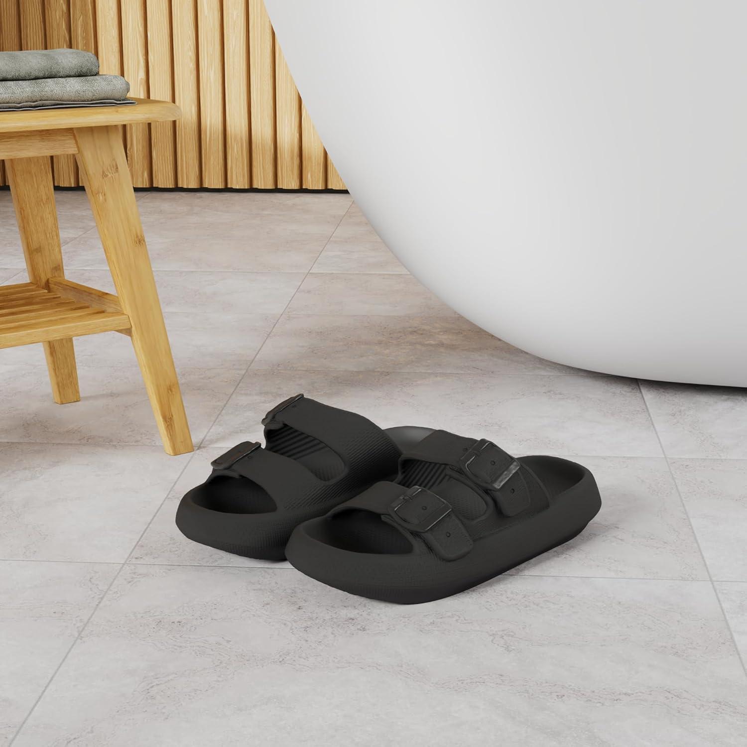 BRONAX Pillow Slippers for Women and Men | Adjustable Double Buckle Shower Slides | Cushioned Thick Sole Sandals(Y15 | All Black)