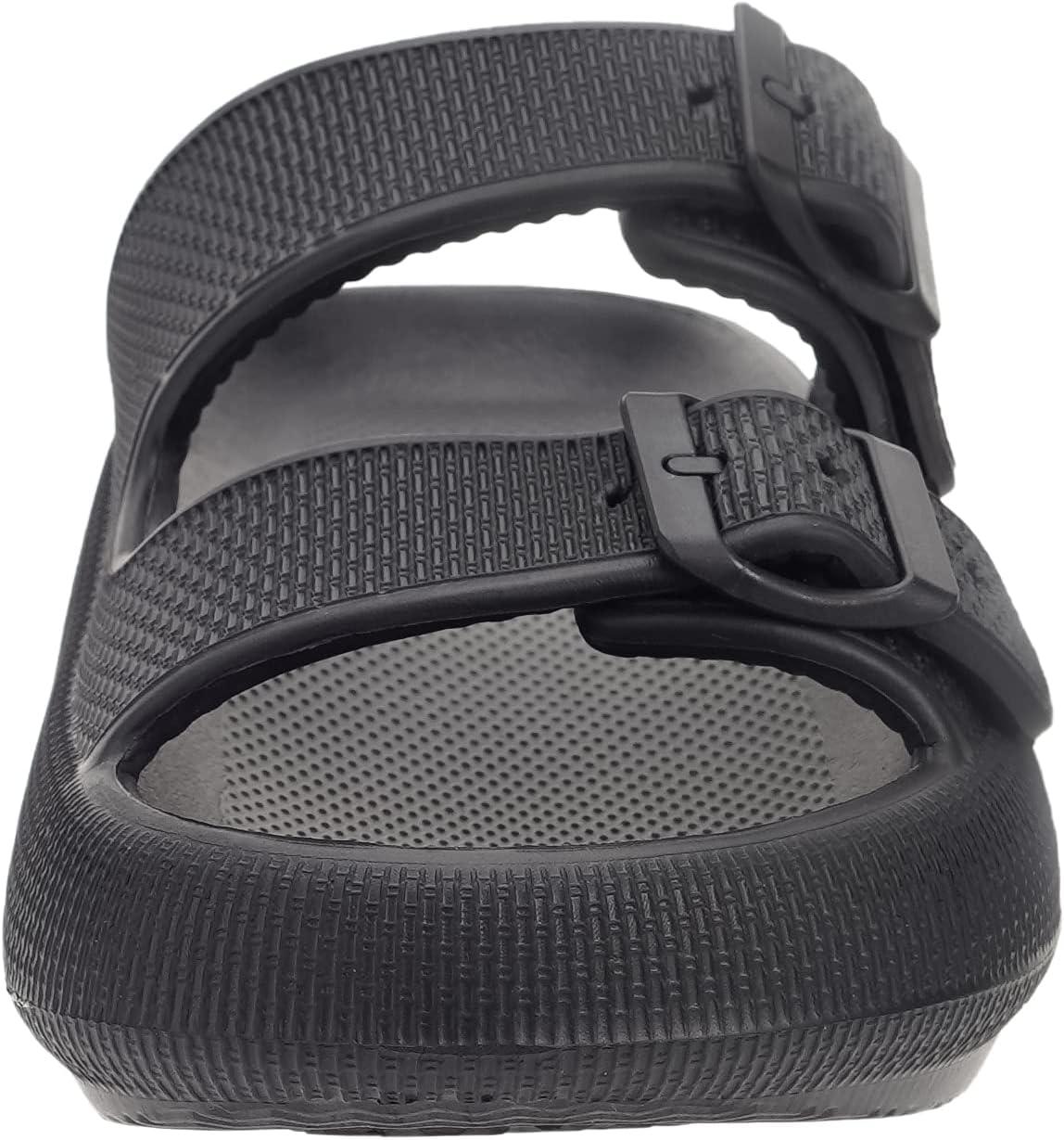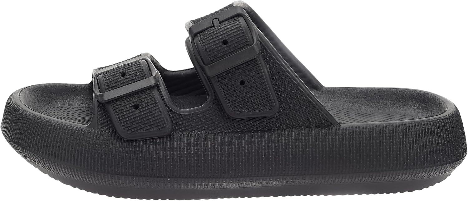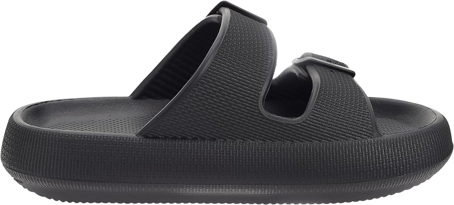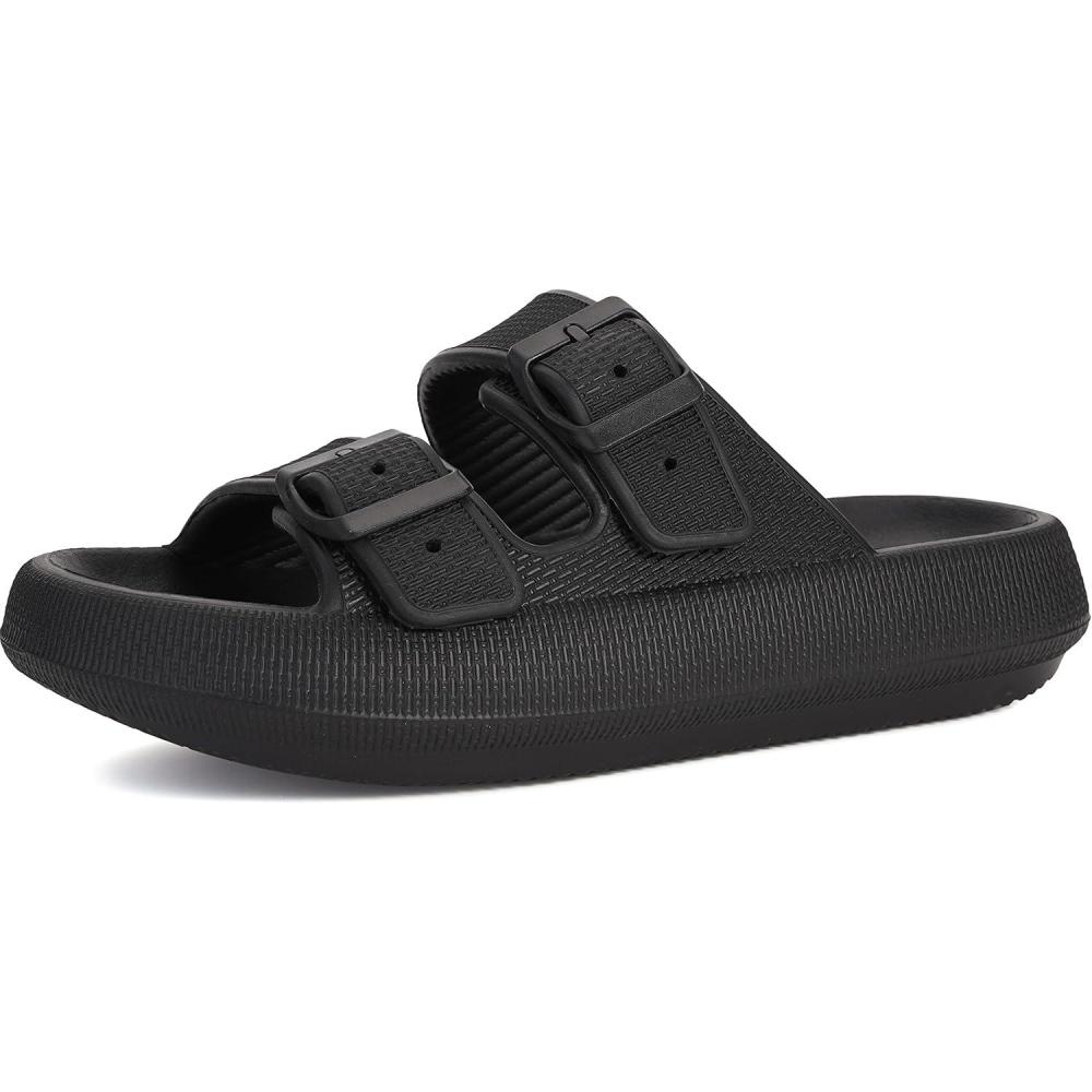 BRONAX Pillow Slippers for Women and Men | Adjustable Double Buckle Shower Slides | Cushioned Thick Sole Sandals(Y15 | All Black)