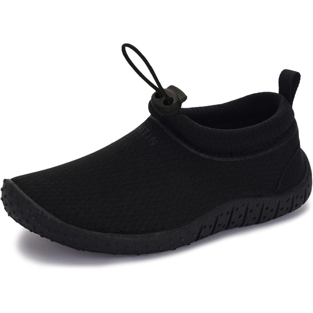 WHITIN Little/Big Kids Amphibious Water Shoes | Flexible Thick Sole for Boys/Girls(All Black)