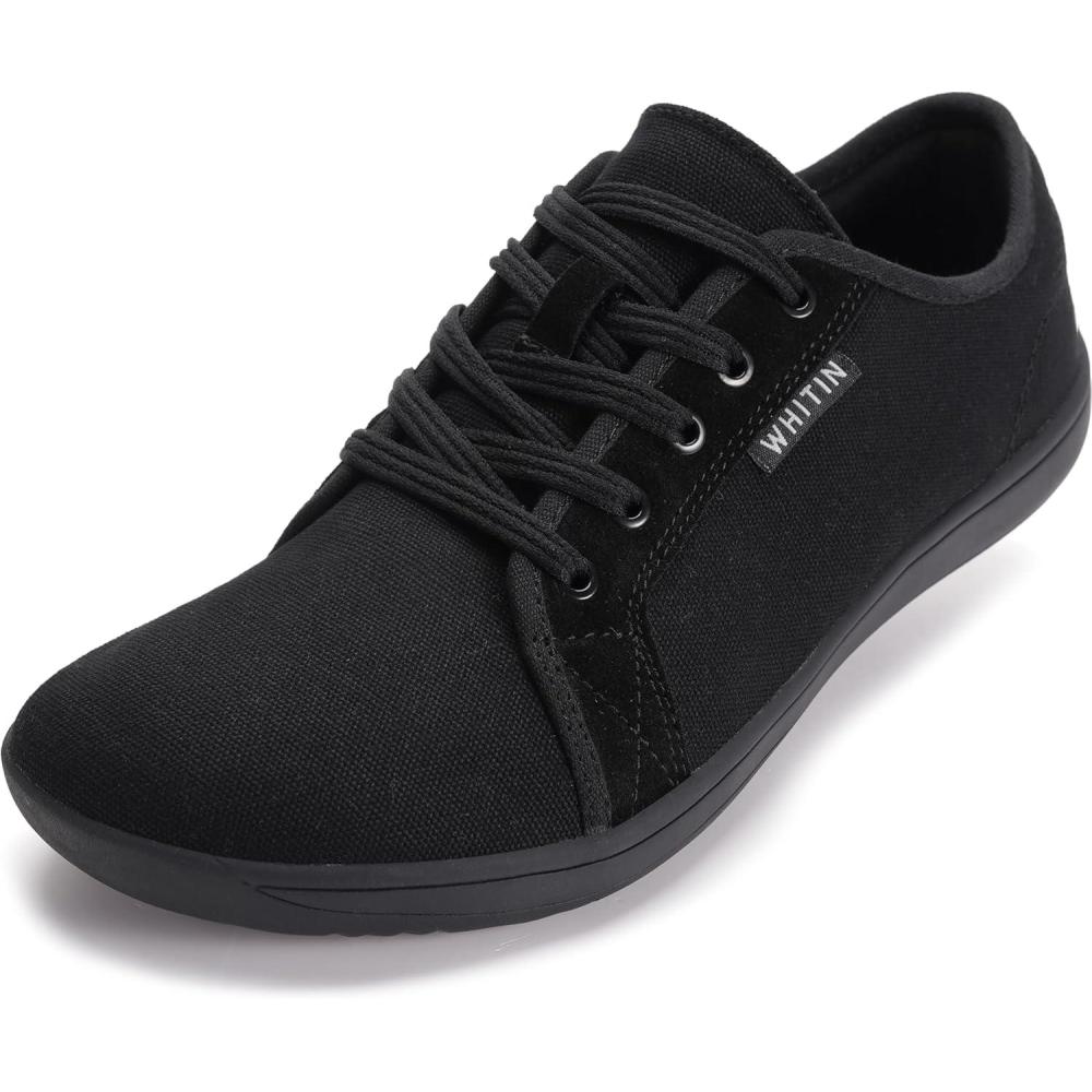 imageWHITIN Mens Canvas Barefoot Shoes  Wide ToeBox  ZeroDrop SoleW81 V2  All Black Canvas
