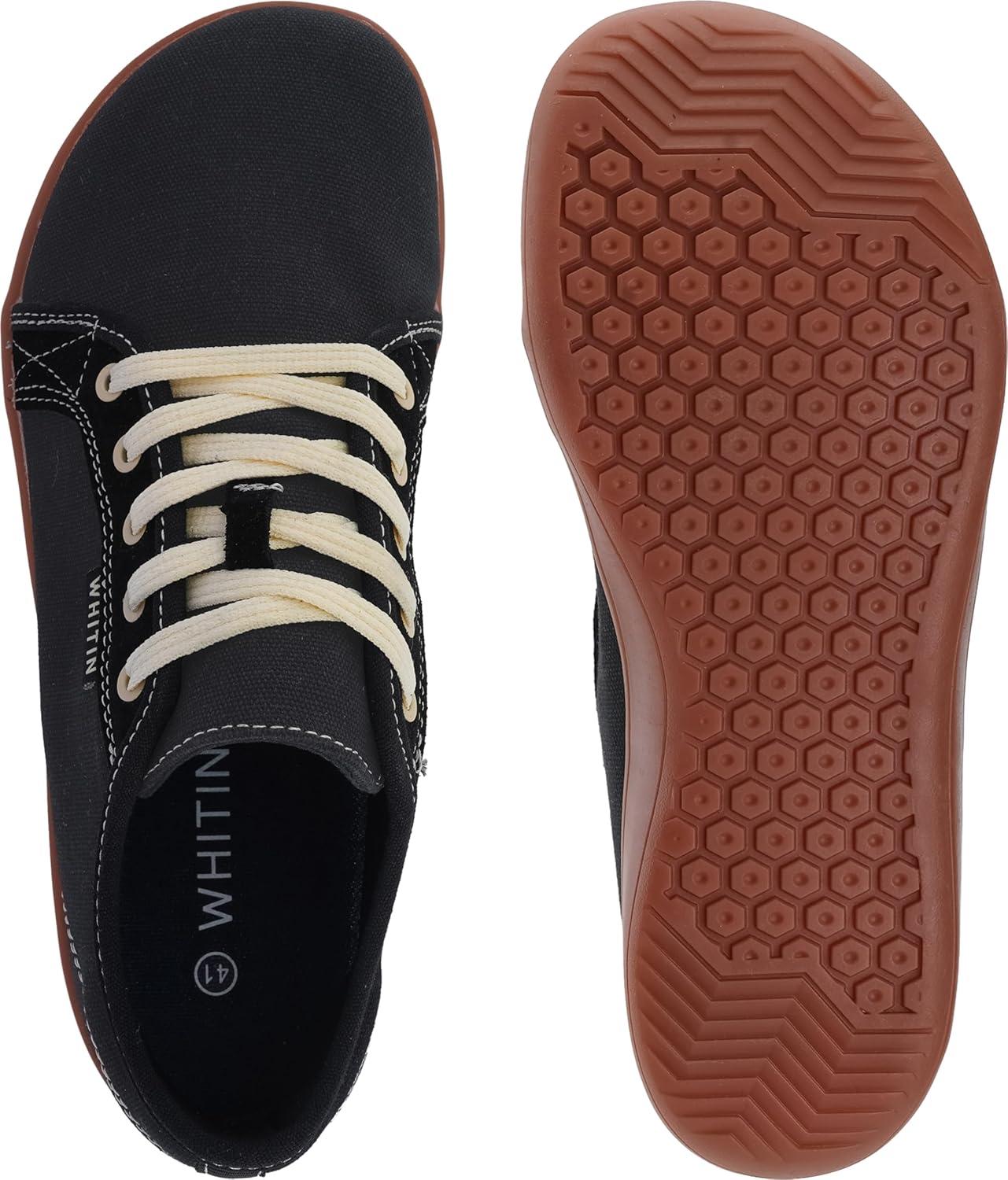 imageWHITIN Mens Canvas Barefoot Shoes  Wide ToeBox  ZeroDrop SoleW81 V2  Black Gum Canvas