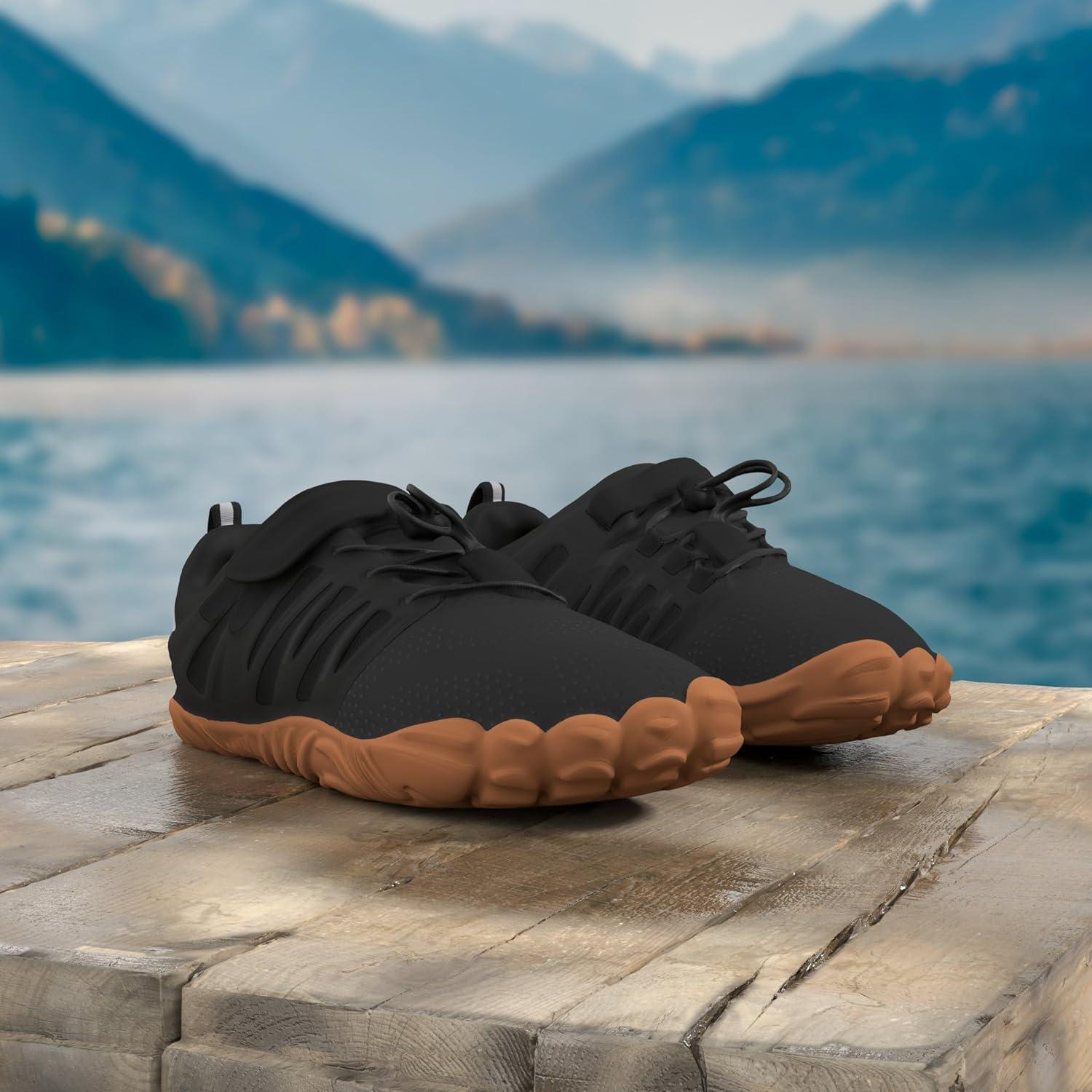 WHITIN Men’s Minimalist Trail Runner | Wide Toe Box | Barefoot Inspired(Black Gum)