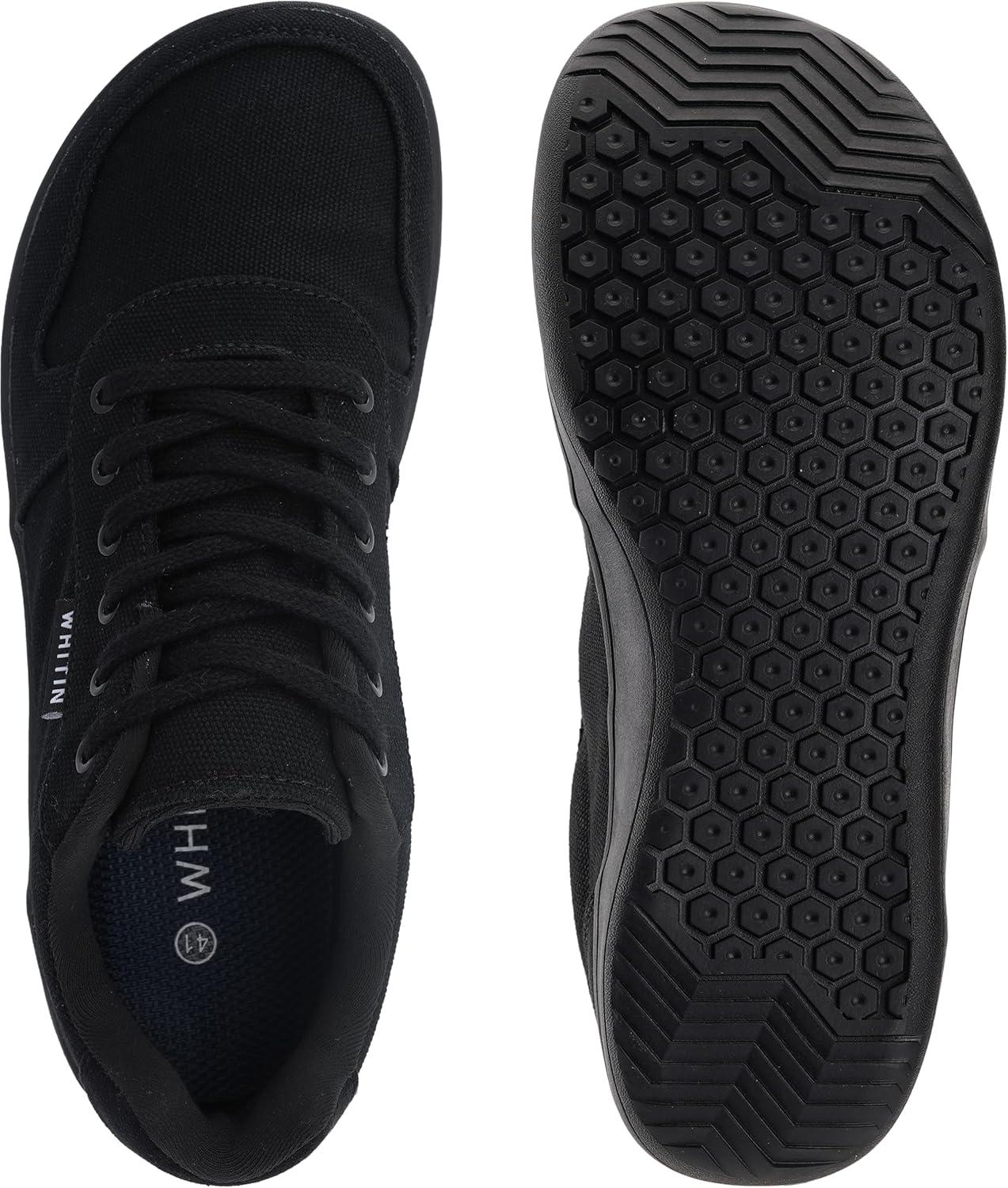 imageWHITIN Mens Wide Barefoot Shoes  Stylish Canvas Minimalist Sneakers  Zero Drop SoleW882  Black White Canvas Upper
