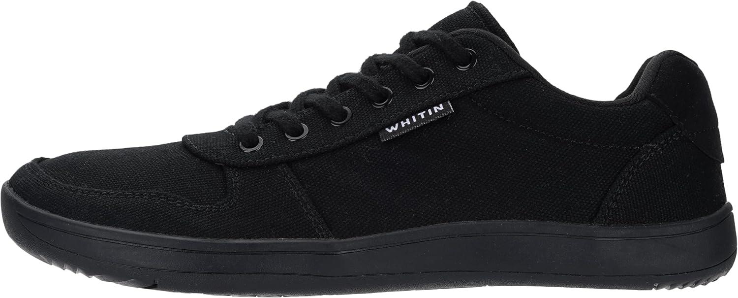 WHITIN Men’s Wide Barefoot Shoes | Stylish Canvas Minimalist Sneakers | Zero Drop Sole(W882 | Black (Canvas Upper))