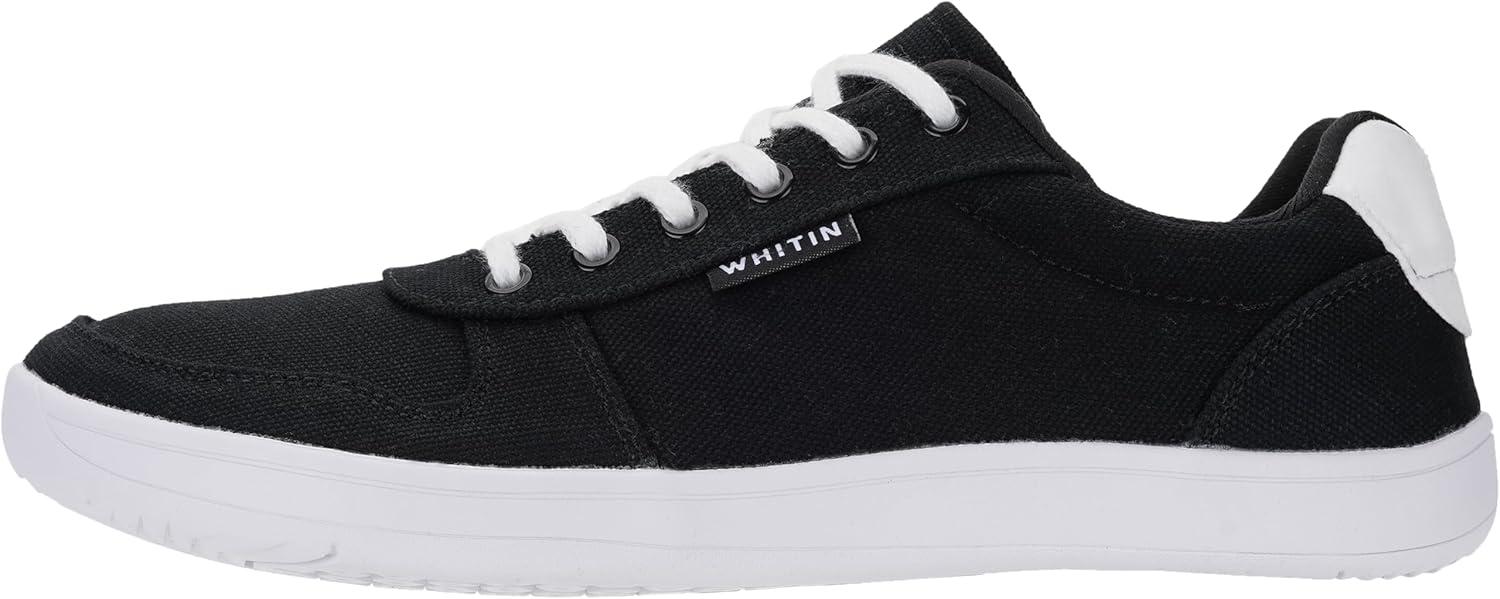 imageWHITIN Mens Wide Barefoot Shoes  Stylish Canvas Minimalist Sneakers  Zero Drop SoleW882  Black White Canvas Upper