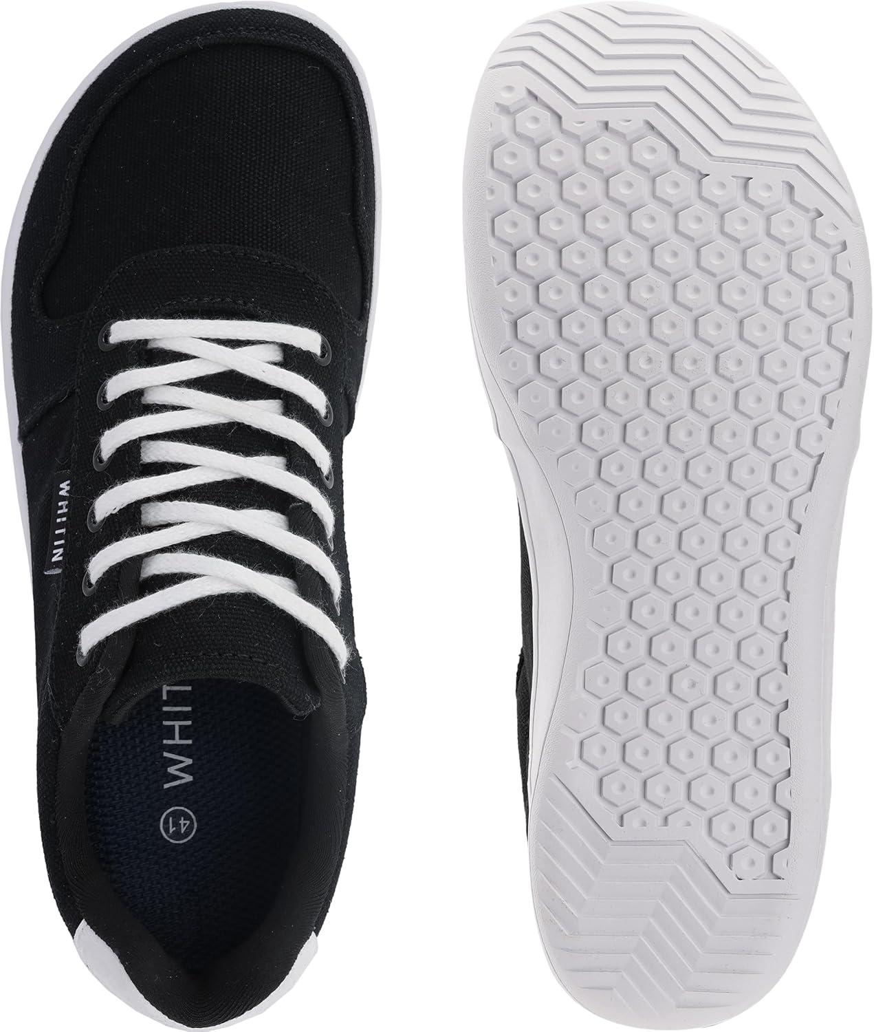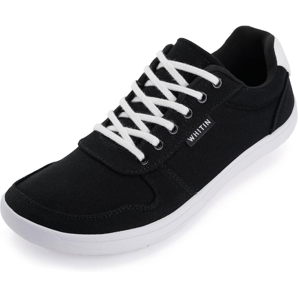 WHITIN Men’s Wide Barefoot Shoes | Stylish Canvas Minimalist Sneakers | Zero Drop Sole(W882 | Black White (Canvas Upper))