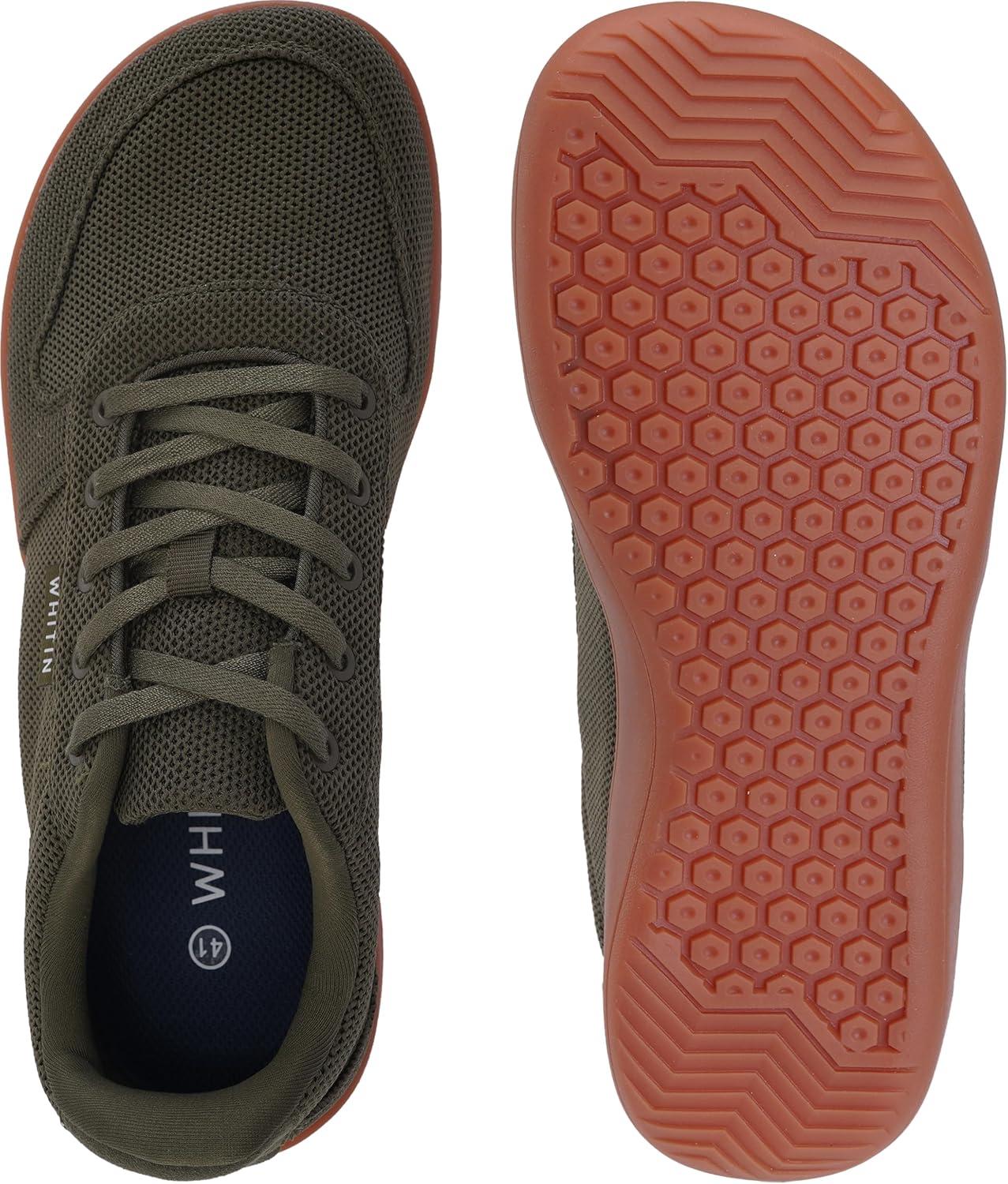 imageWHITIN Mens Wide Barefoot Shoes  Stylish Canvas Minimalist Sneakers  Zero Drop SoleW883  Olive Green Knit Upper