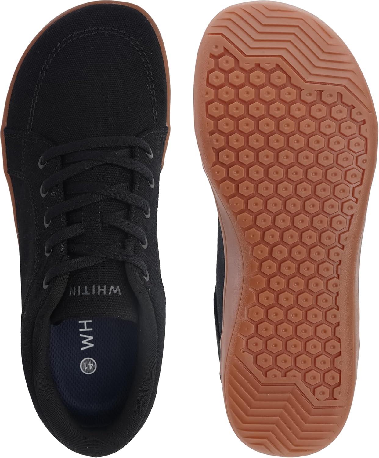 imageWHITIN Mens Wide Canvas Barefoot ampamp Minimalist Shoes  Zero Drop SoleW892  BlackGum
