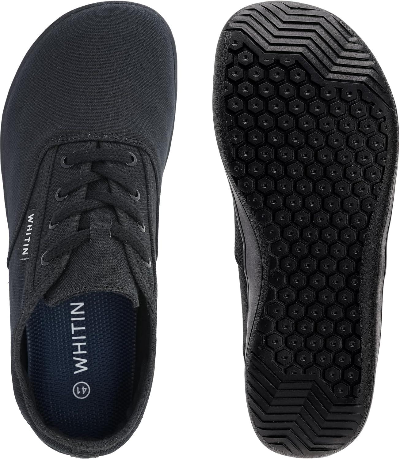 WHITIN Men’s Wide Canvas Barefoot Sneakers | Zero Drop Sole | Minimalist Footwear(W87 | All Black)