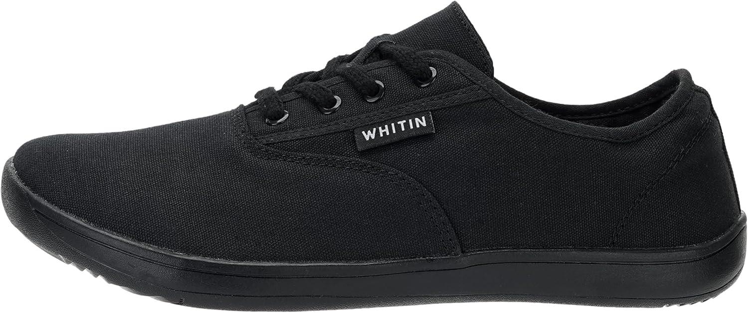 imageWHITIN Mens Wide Canvas Barefoot Sneakers  Zero Drop Sole  Minimalist FootwearW87  All Black