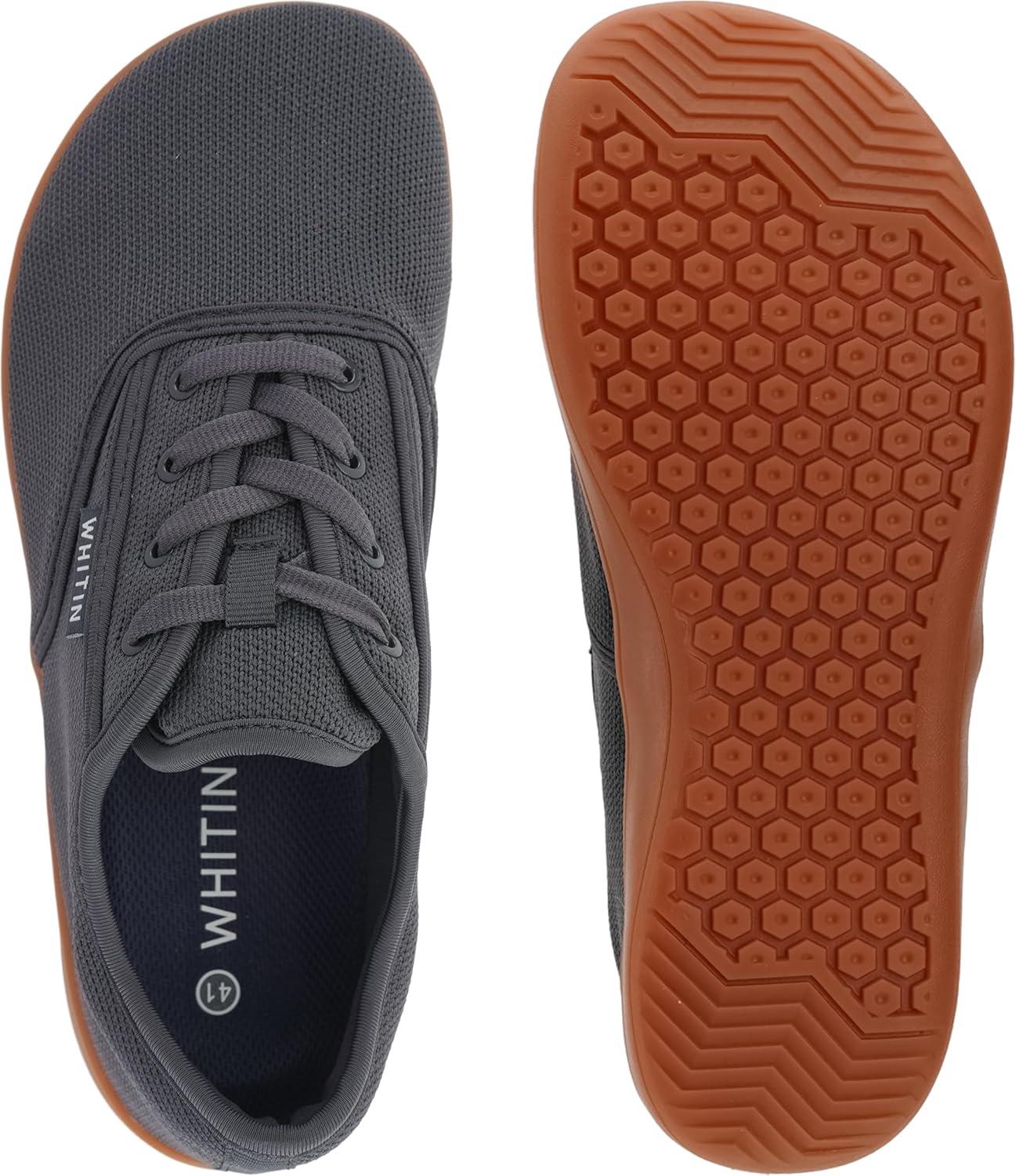 imageWHITIN Mens Wide Canvas Barefoot Sneakers  Zero Drop Sole  Minimalist FootwearW872  Grey Gum Knit Upper