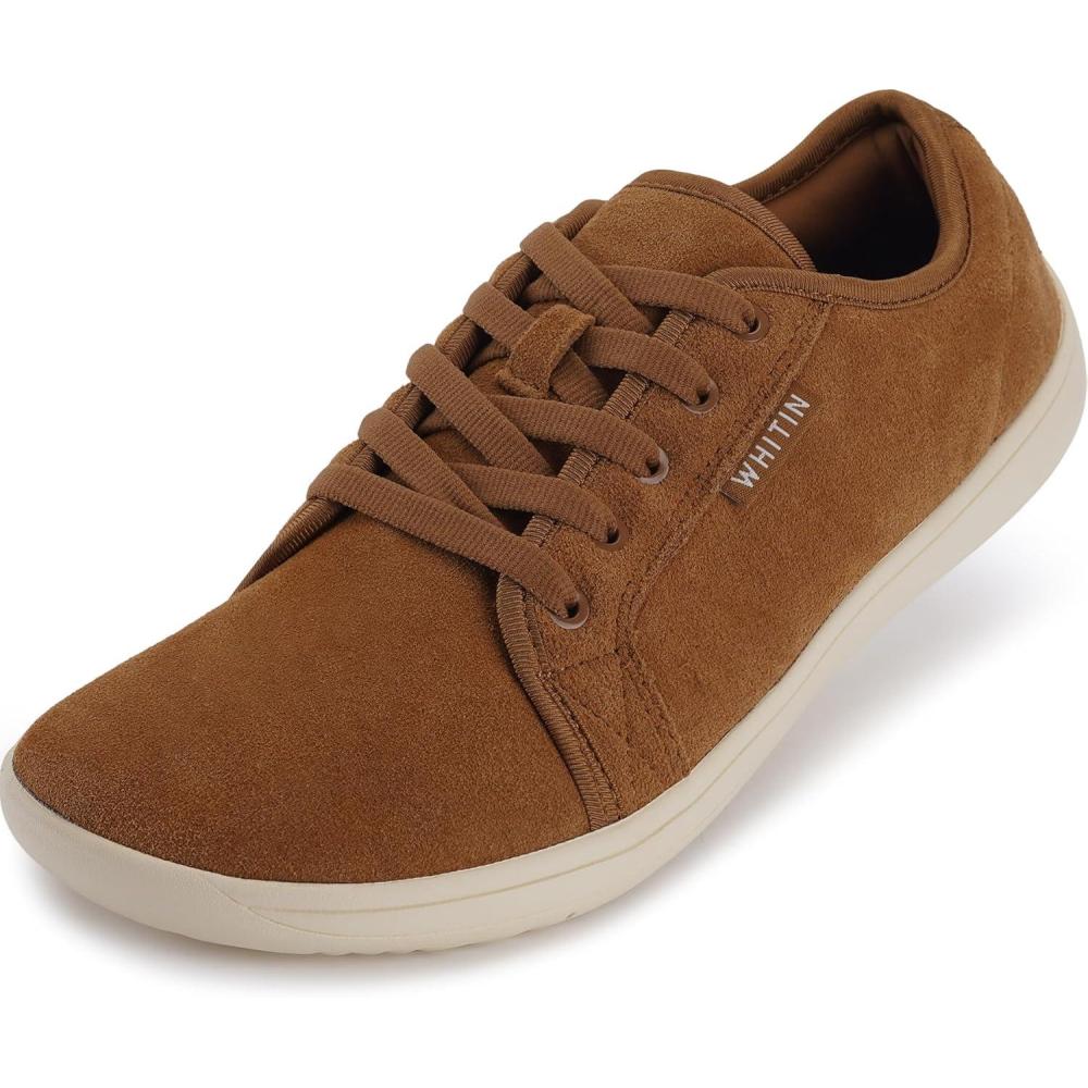 WHITIN Men's Wide Genuine Leather Barefoot Shoes | Minimalist Fashion Sneakers | Zero Drop Sole(Brown)