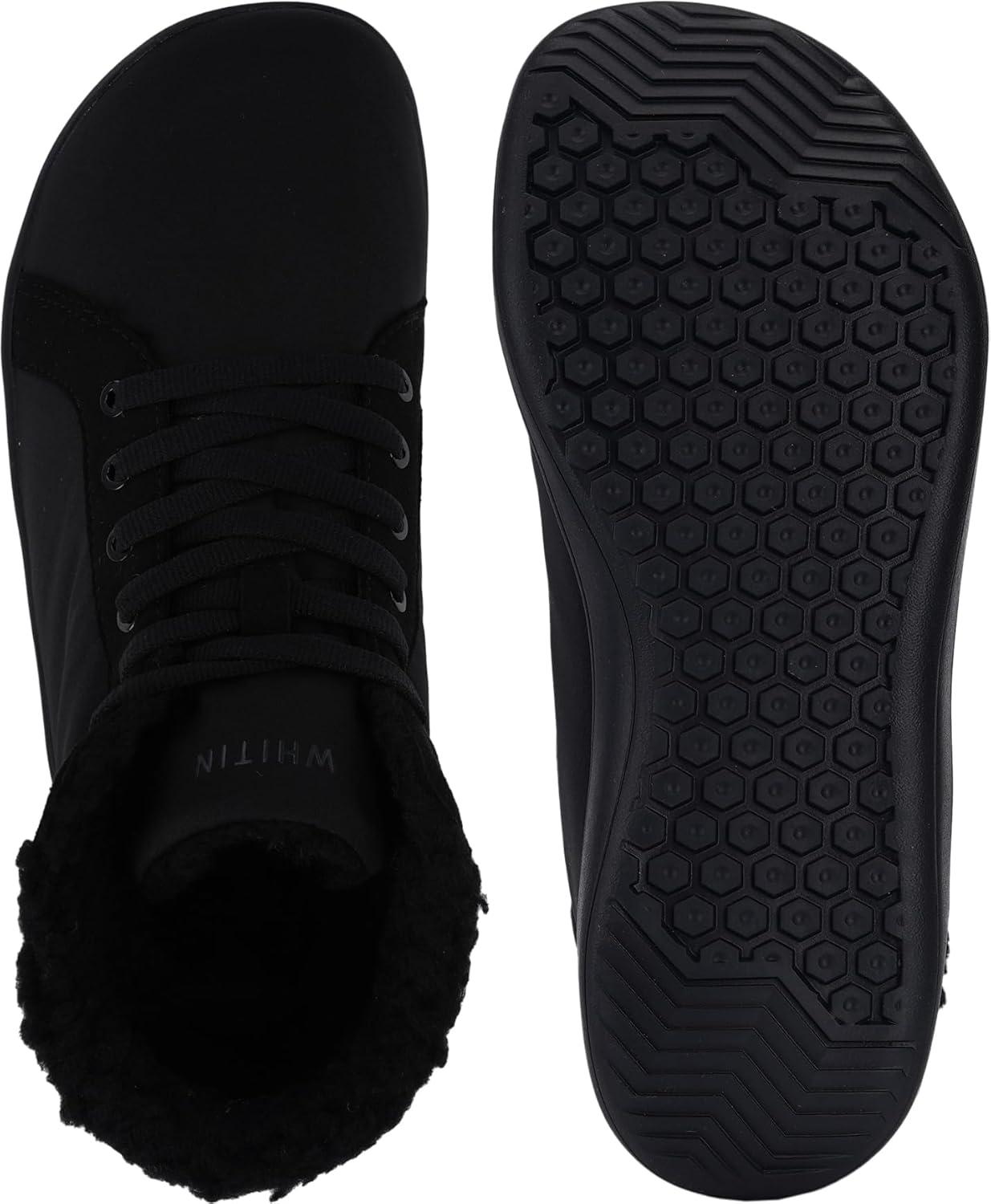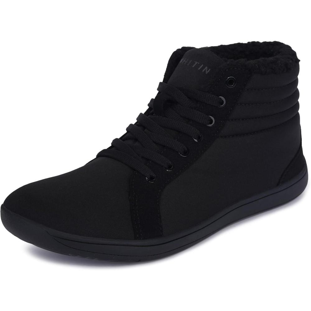 WHITIN Men’s Wide Winter Barefoot Shoes | Hi-top Minimalist Sneakers | Zero Drop Sole | Optimal Warmth & Protection(W826 | All Black)