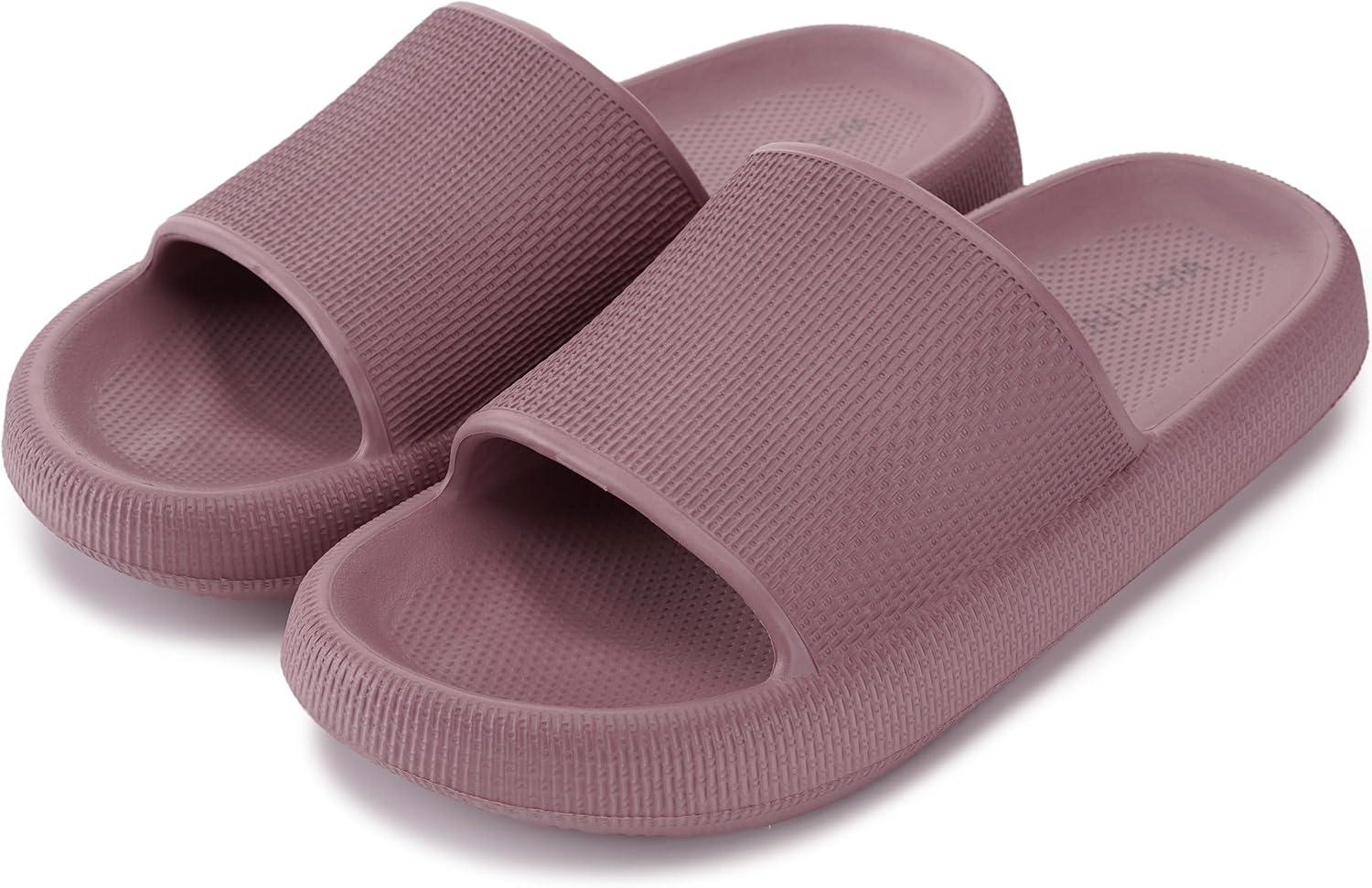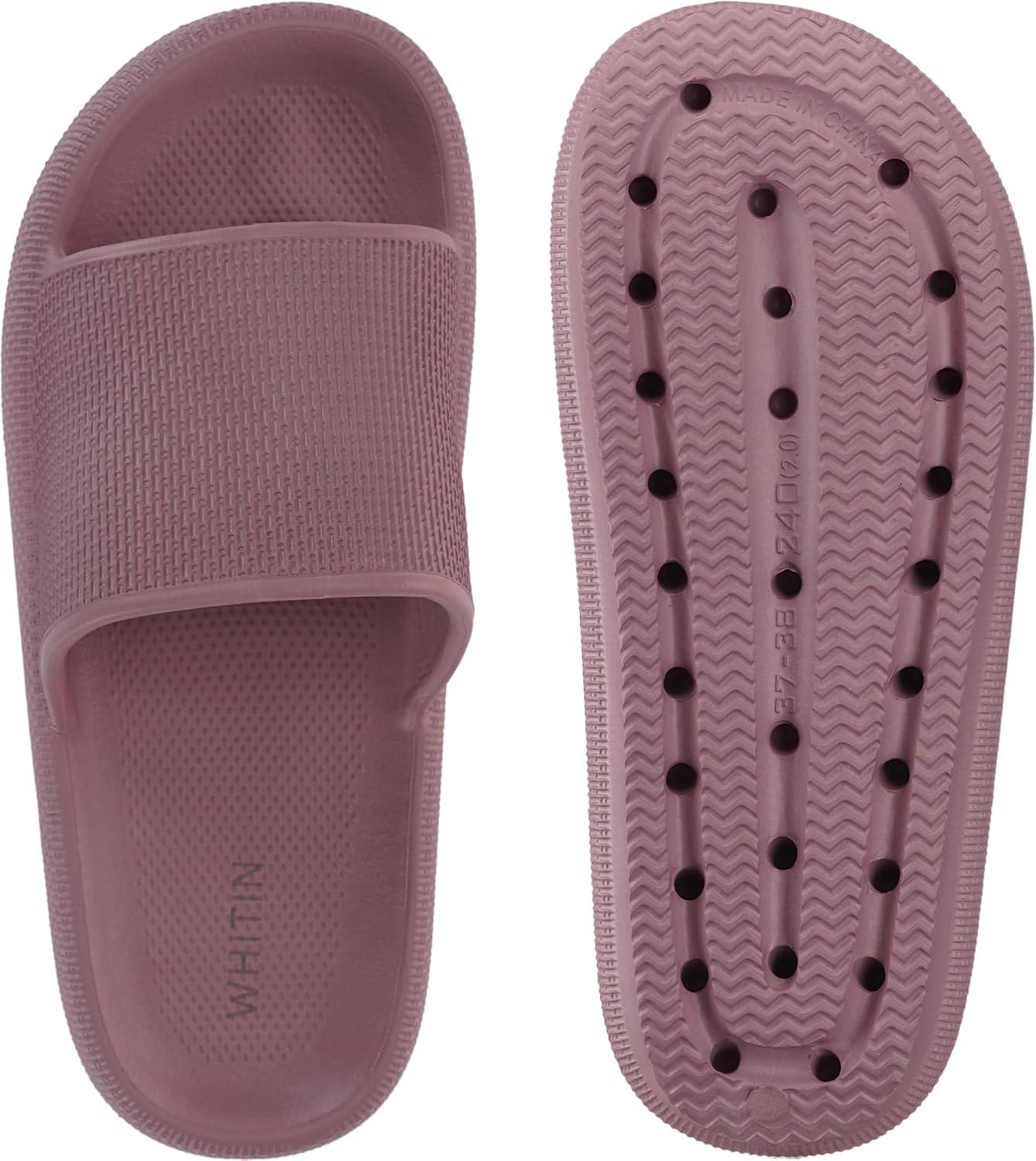 WHITIN Pillow Slippers for Women Non Slip | Cushioned Thick Sole Slides | Quick Drying Bathroom Sandals(Blush)