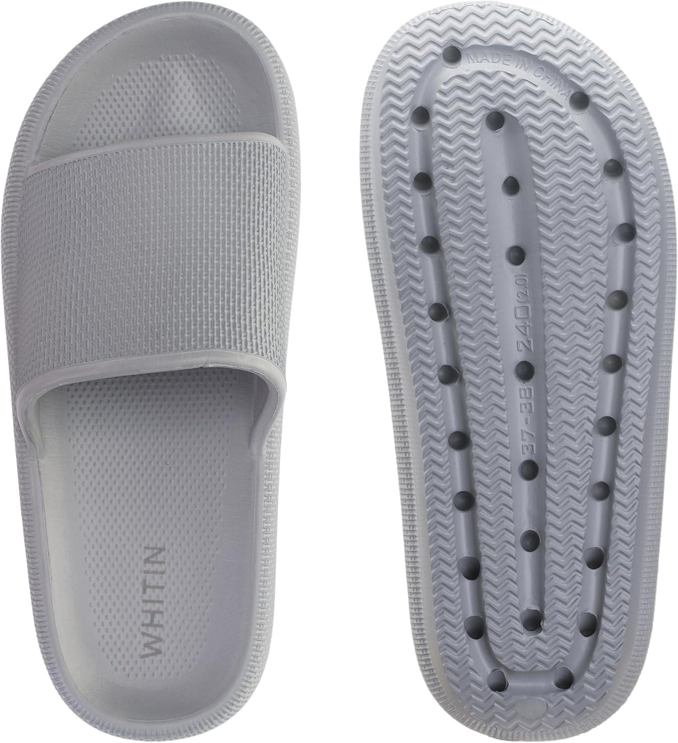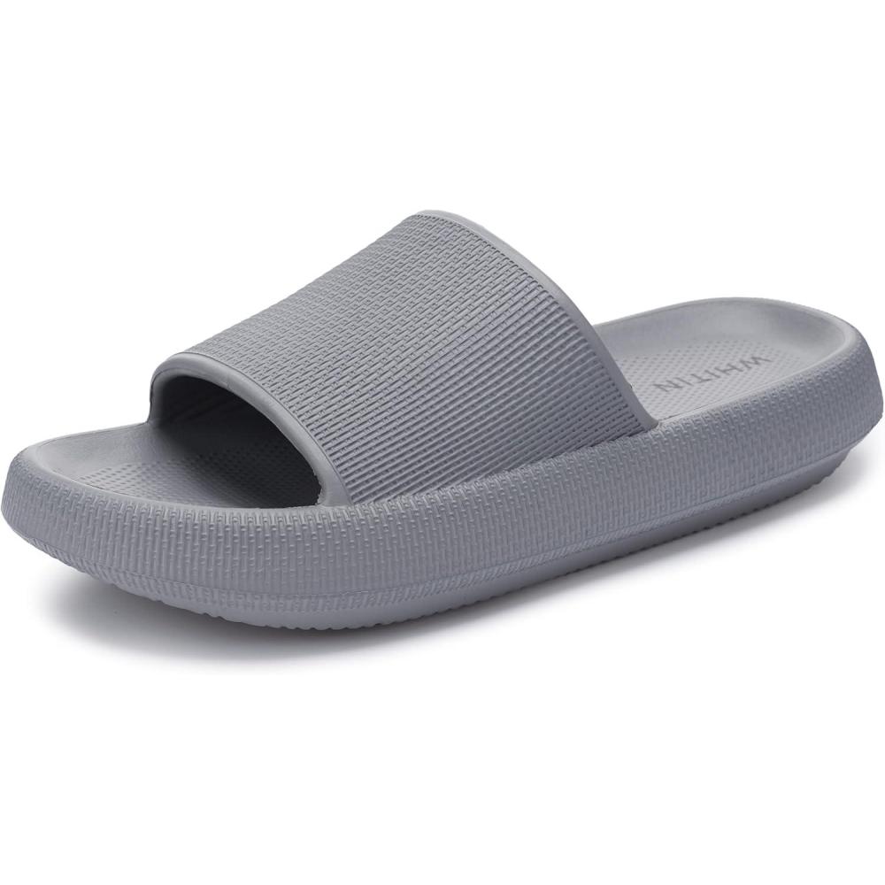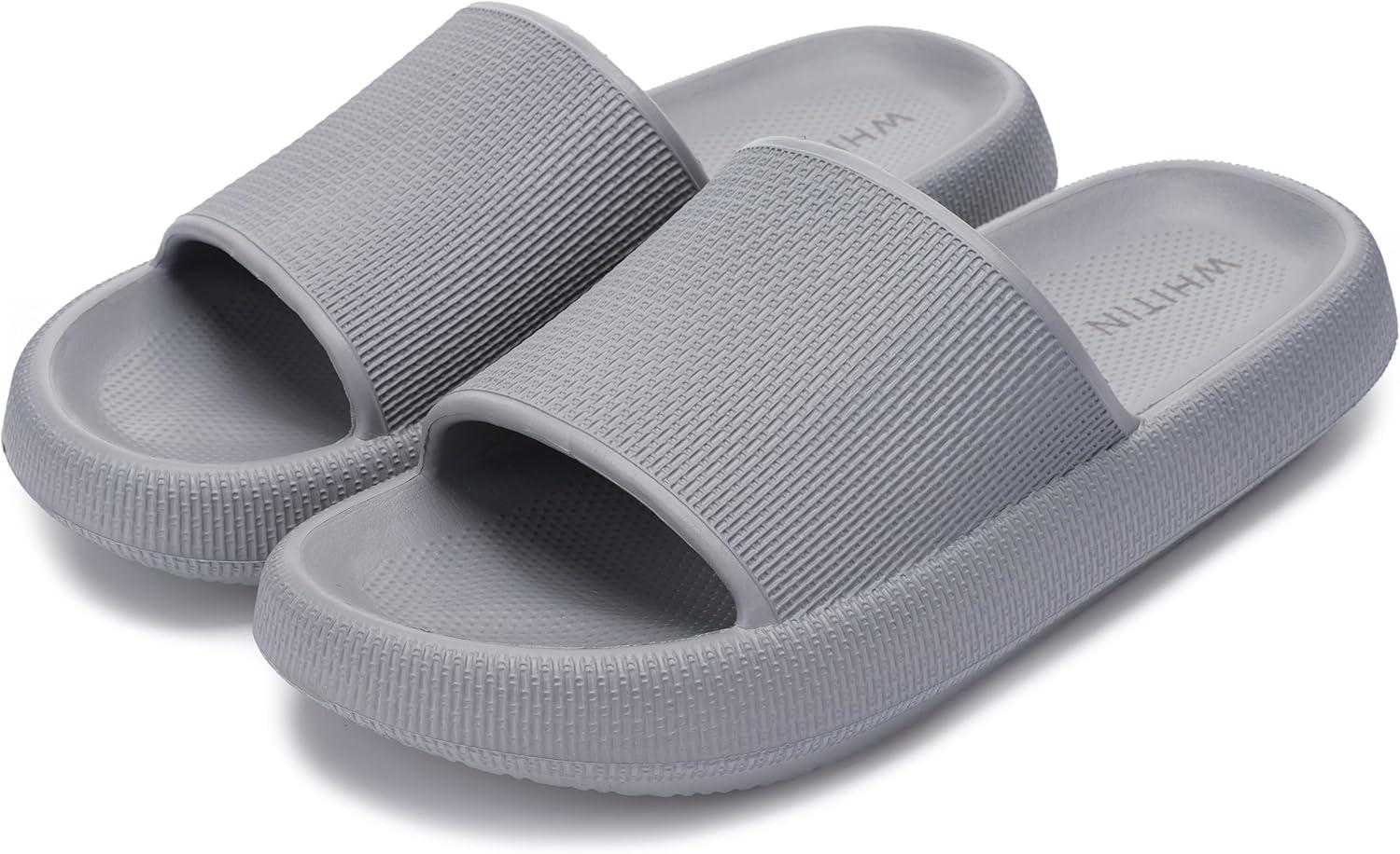 WHITIN Pillow Slippers for Women Non Slip | Cushioned Thick Sole Slides | Quick Drying Bathroom Sandals(Grey)