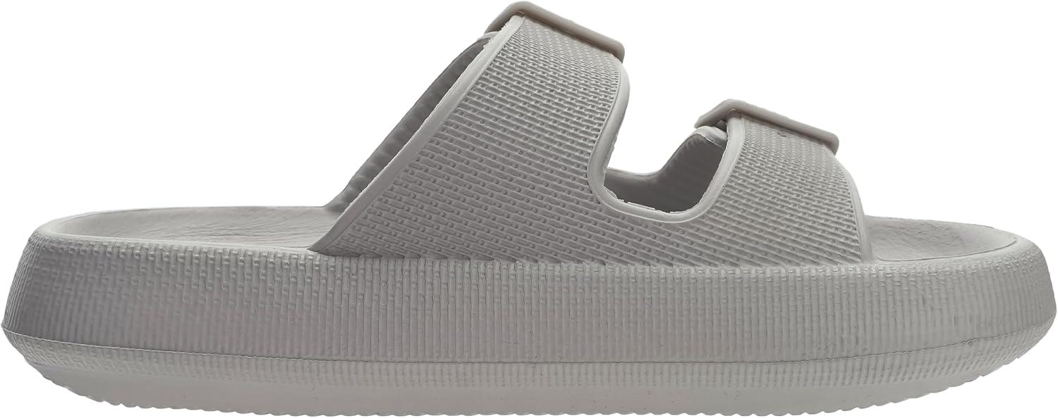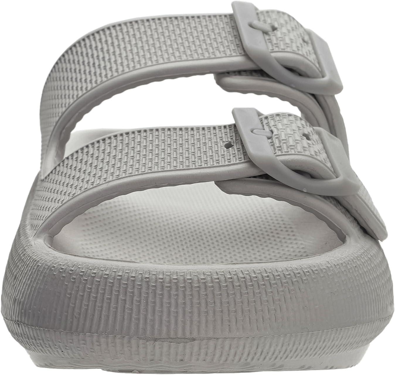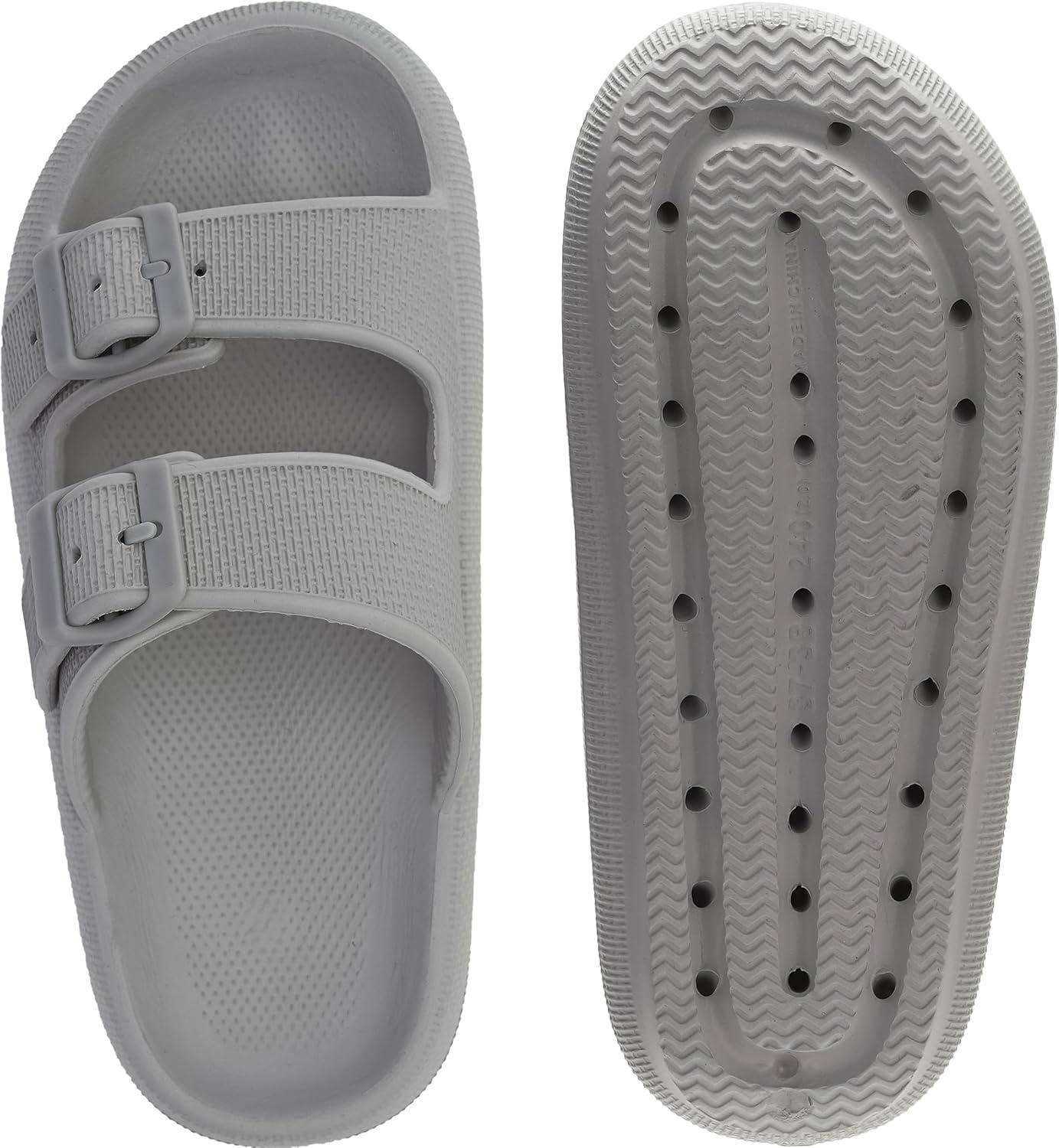 WHITIN Slides for Women Men Double Buckle Adjustable Thick Sole Pillow Slippers Bathroom Sandals(Grey)