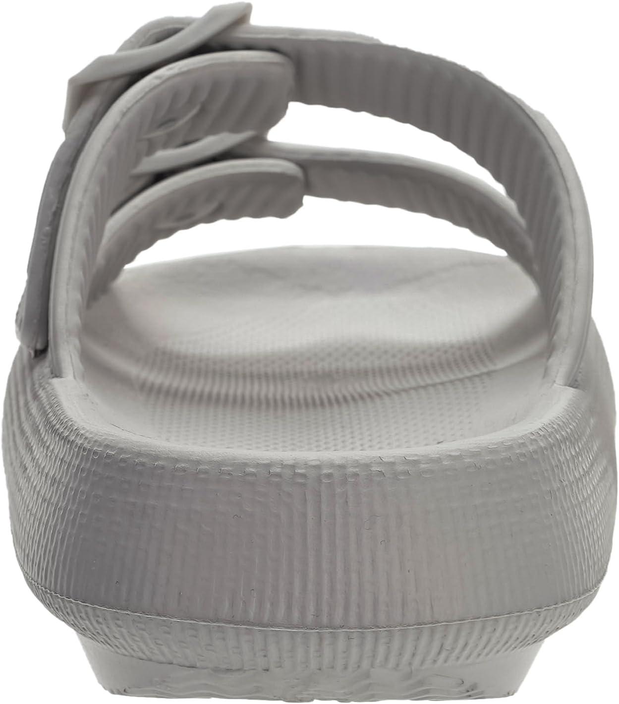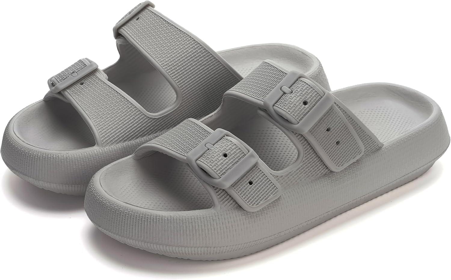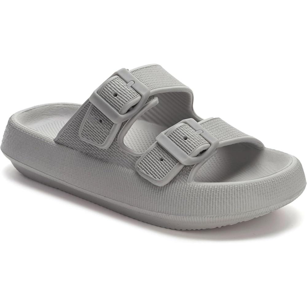 WHITIN Slides for Women Men Double Buckle Adjustable Thick Sole Pillow Slippers Bathroom Sandals(Grey)
