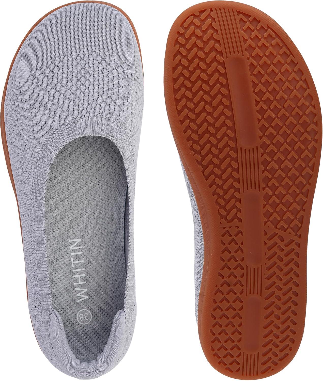 WHITIN Women’s Barefoot Ballet Flats + Wide Toe Box + Zero Drop Sole(Grey Gum)