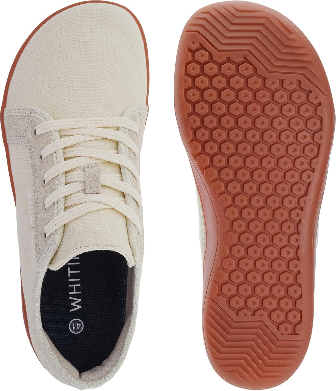 WHITIN Women’s Canvas Barefoot Shoes | Wide Width Minimalist Sneakers | Classic Fit Low Top(W81v2 | Canvas Beige Gum)