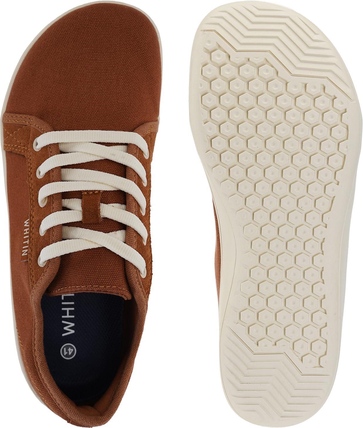 WHITIN Women’s Canvas Barefoot Shoes | Wide Width Minimalist Sneakers | Classic Fit Low Top(W81v2 | Canvas Brown Begie)