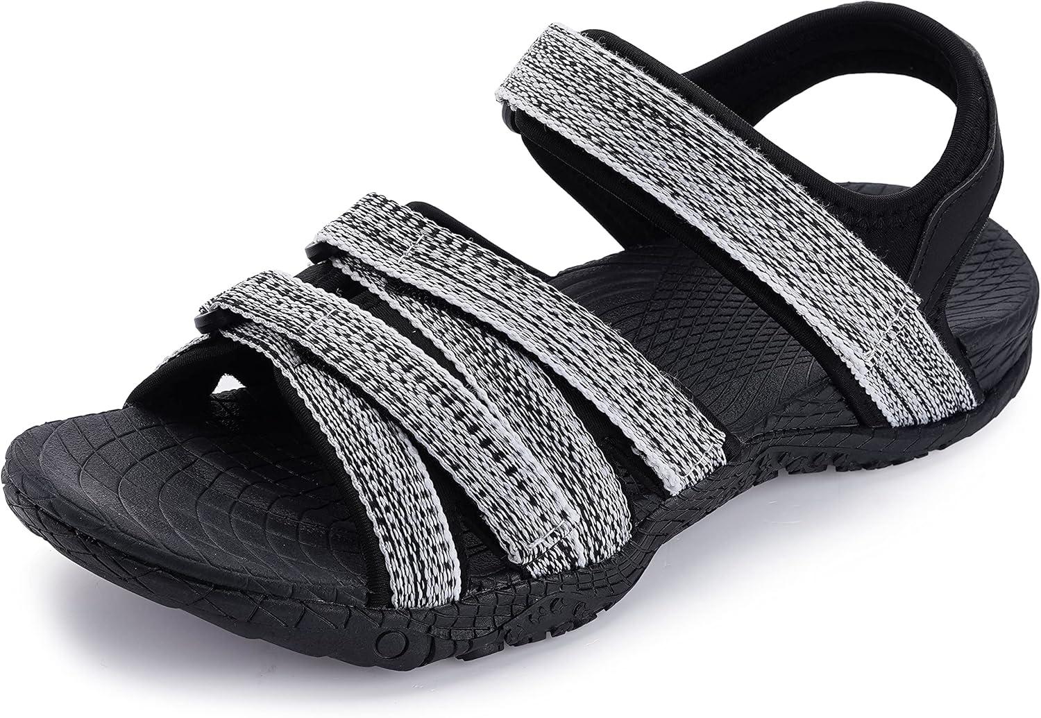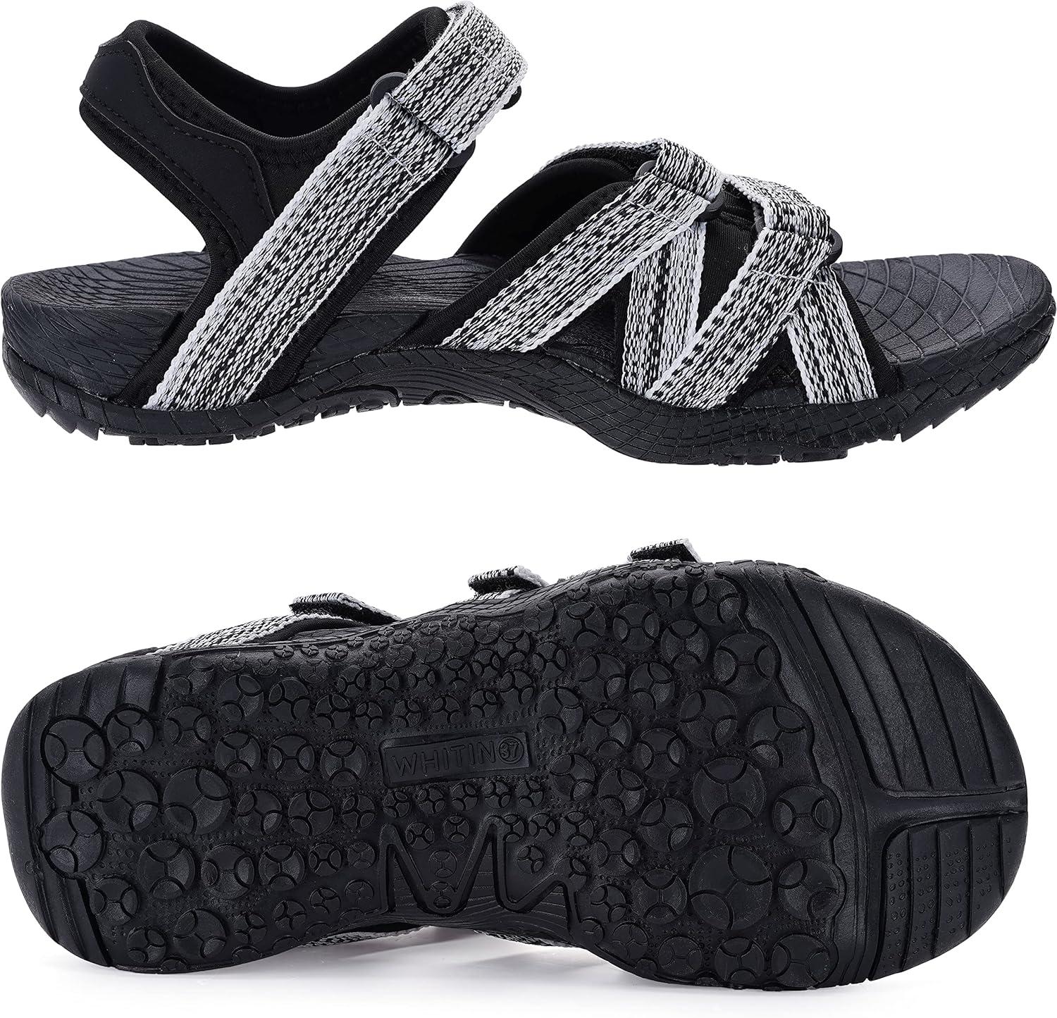 WHITIN Women’s Hiking Sandals with Arch Support | Adjustable Hook and Loop Straps | Durable Sport Sandals for Outdoor Adventure(C51 | Whitemulti)