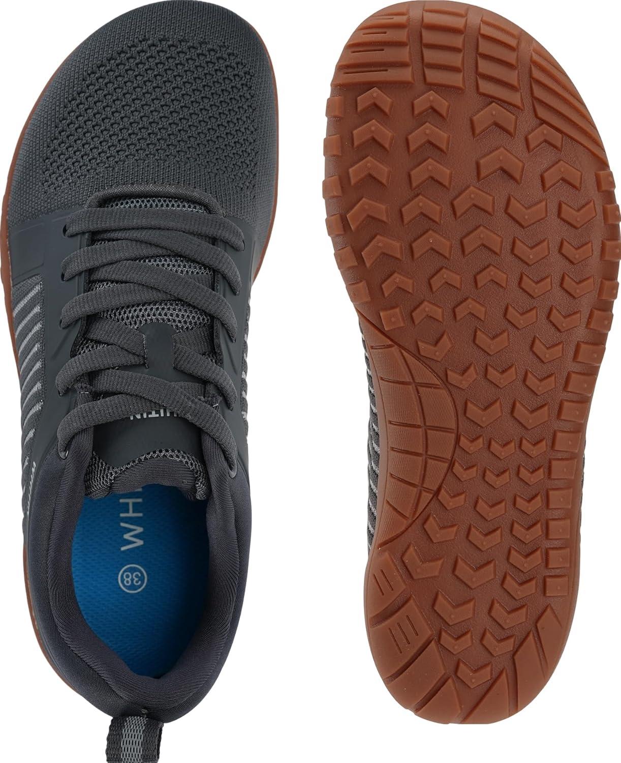 WHITIN Women’s Wide Barefoot Trail Running Shoes | Minimalist Hiking Footwear | Zero Drop | Flexible Traction(Grey Gum)
