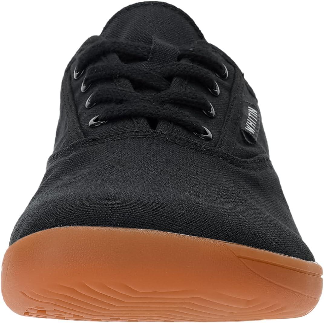 WHITIN Women's Wide Canvas Minimalist Barefoot Shoes | Zero Drop Sole | Casual Sneaker(W87 | Black/Gum)