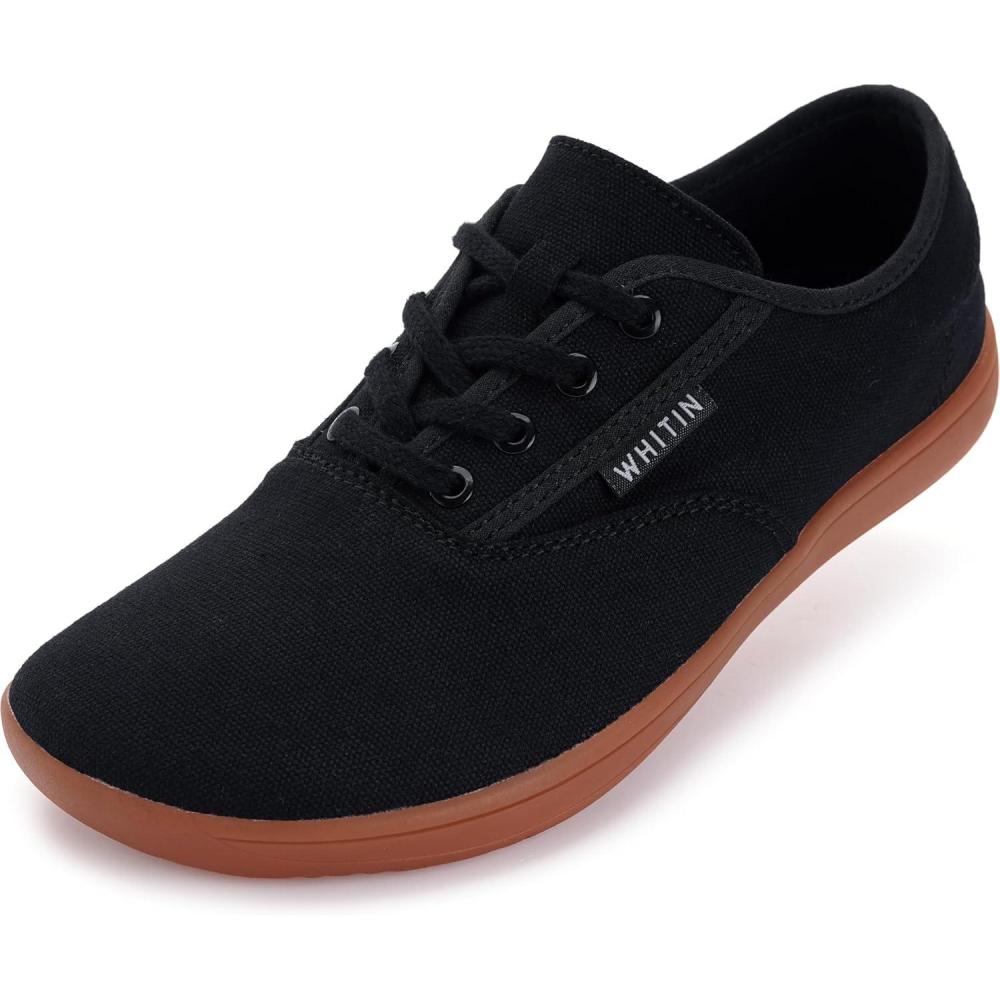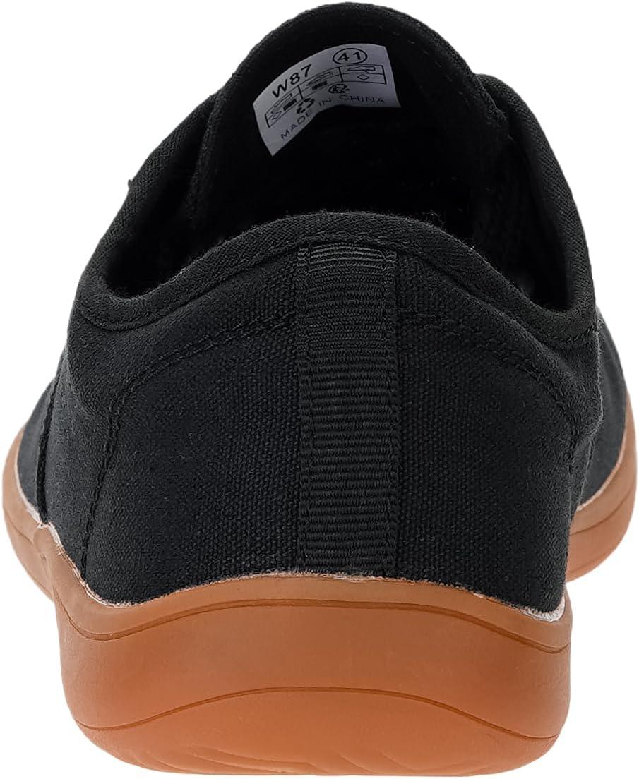 WHITIN Women’s Wide Canvas Minimalist Barefoot Shoes | Zero Drop Sole | Casual Sneaker(W87 | Black/Gum)