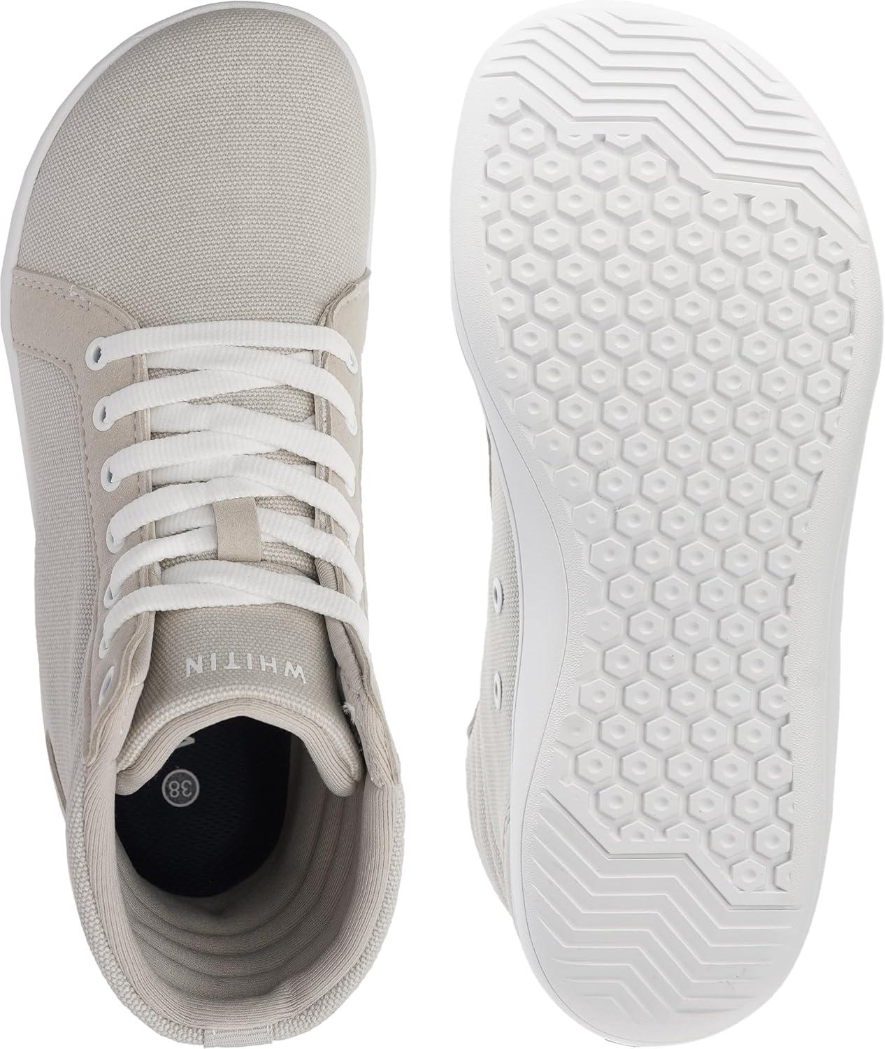 WHITIN Women’s Wide High-Top Canvas Barefoot Sneakers | Minimalist Street-Ready Fit | Comfort-Forward Ankle Support(W823 | Light Grey)
