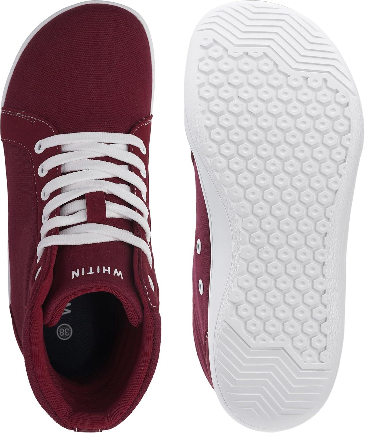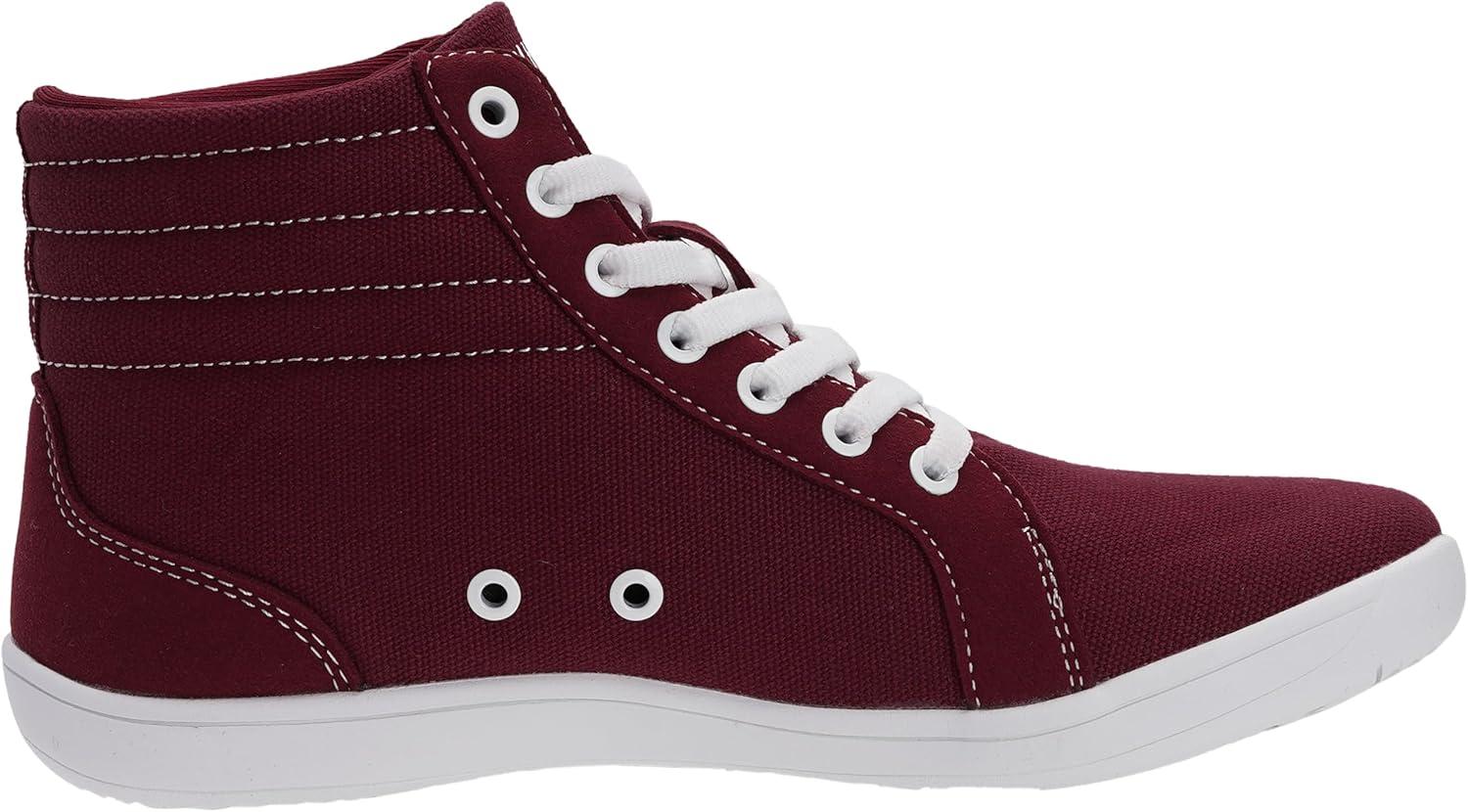 WHITIN Women’s Wide High-Top Canvas Barefoot Sneakers | Minimalist Street-Ready Fit | Comfort-Forward Ankle Support(W823 | Wine Red)