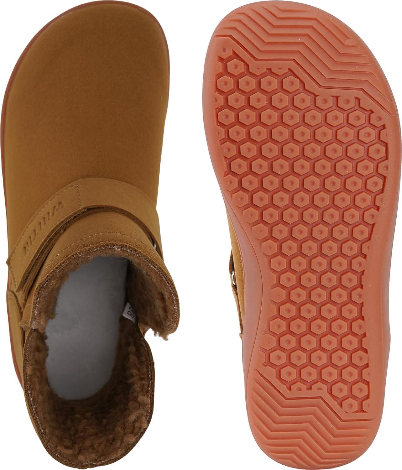 WHITIN Women’s Wide Toe Box Barefoot Boots Ankle Minimalist Zero Drop Sole Shoes Size 7 Fashion Sneakers Adjustable Velcro Strap Mid-Calf Warm Brown Gum