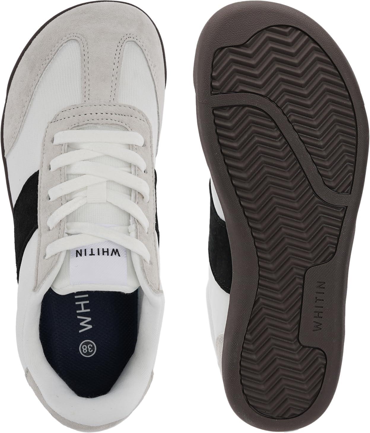 WHITIN Women’s Wide Toe Box Barefoot Shoes | Fashion Suede Patchwork Design | Zero Drop Sole(Grey Chocolate)