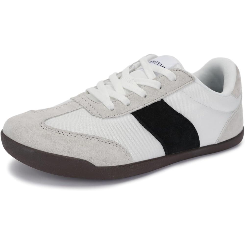 imageWHITIN Womens Wide Toe Box Barefoot Shoes  Fashion Suede Patchwork Design  Zero Drop SoleGrey Gum