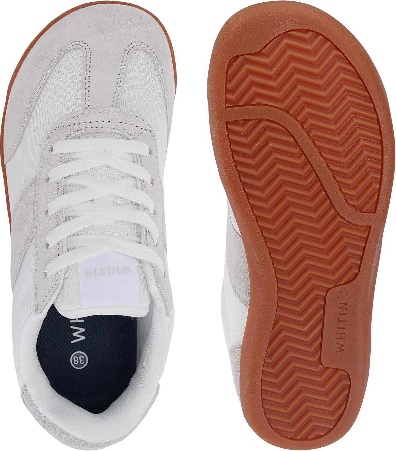 imageWHITIN Womens Wide Toe Box Barefoot Shoes  Fashion Suede Patchwork Design  Zero Drop SoleGrey Gum