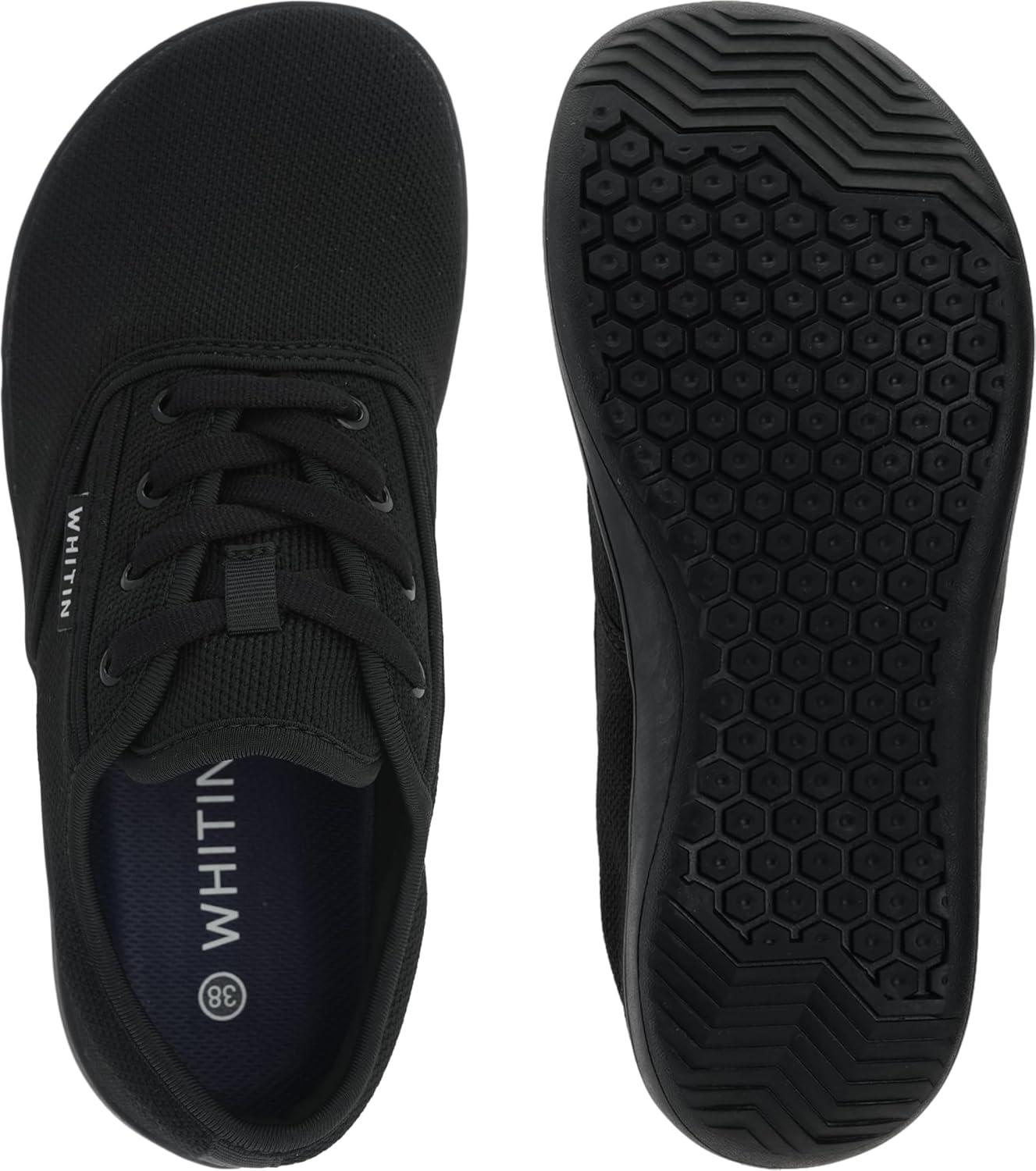 WHITIN Women’s Wide Toe Box Minimalist Barefoot Shoes + Zero Drop Sole(W872 | Black Gum)